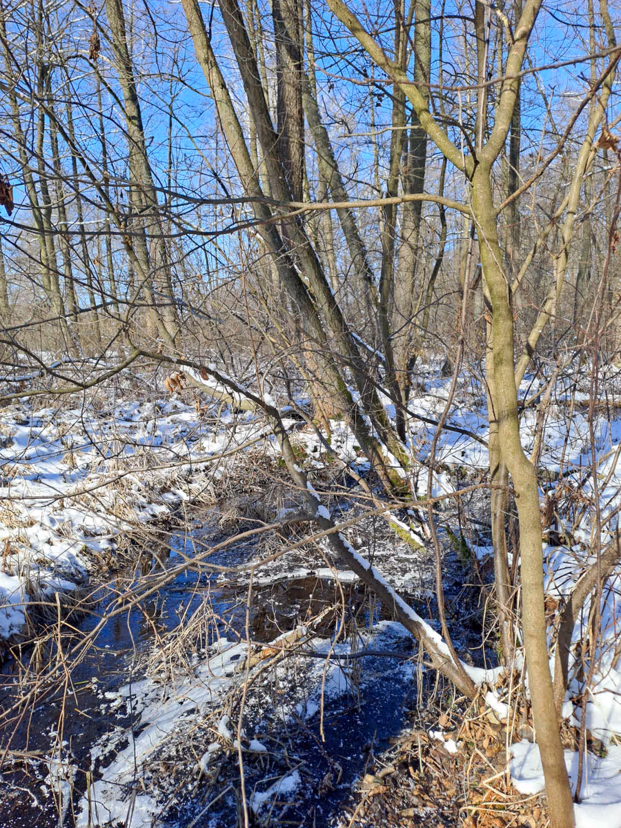 V současné době se jedná o zapojený porost s převahou olše lepkavé, její příměs tvoří olše šedá, bříza a jasan. Ve spodní etáži se nachází hustý podrost keřů. Střední a severní část plochy je výrazněji prořídlá nebo má charakter bezlesí. Plocha je silně zamokřená, místy s charakterem bažinaté olšiny nebo rákosiny. Míra zamokření je značně proměnlivá s ohledem na roční období a množství srážek v příslušném roce. Na ploše je vysoké zastoupení periodických i trvalých menších vodních ploch (tůní, tůněk), které jsou ideální biotopem pro vývoj obojživelníků.