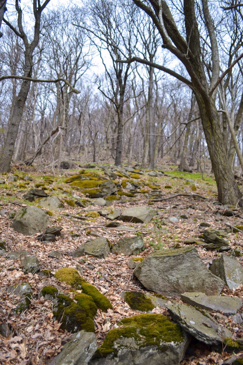 lesní ekosystém na kamenitém vrcholu s prudkými svahy a výchozem sutě s pestrou druhovou skladbou