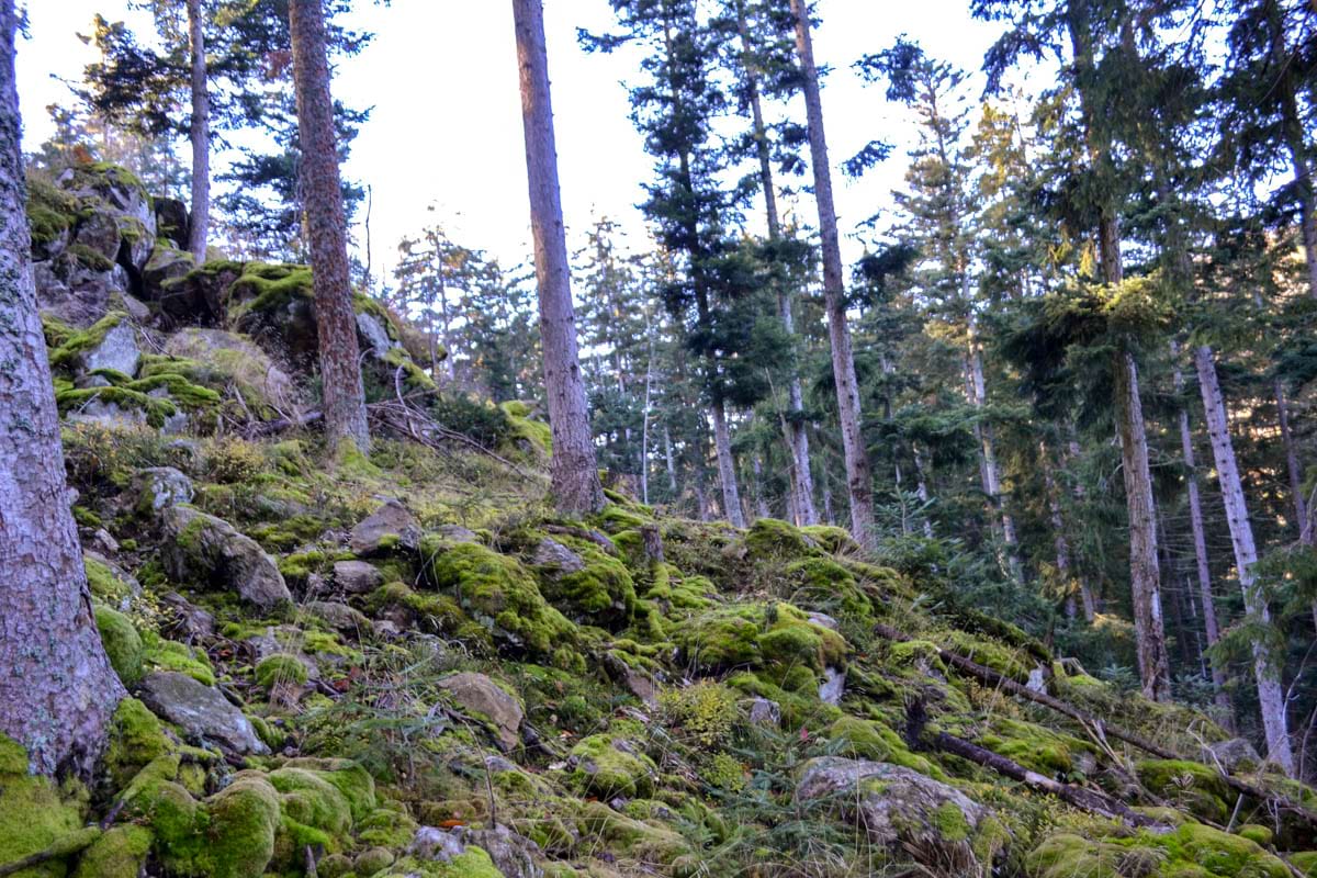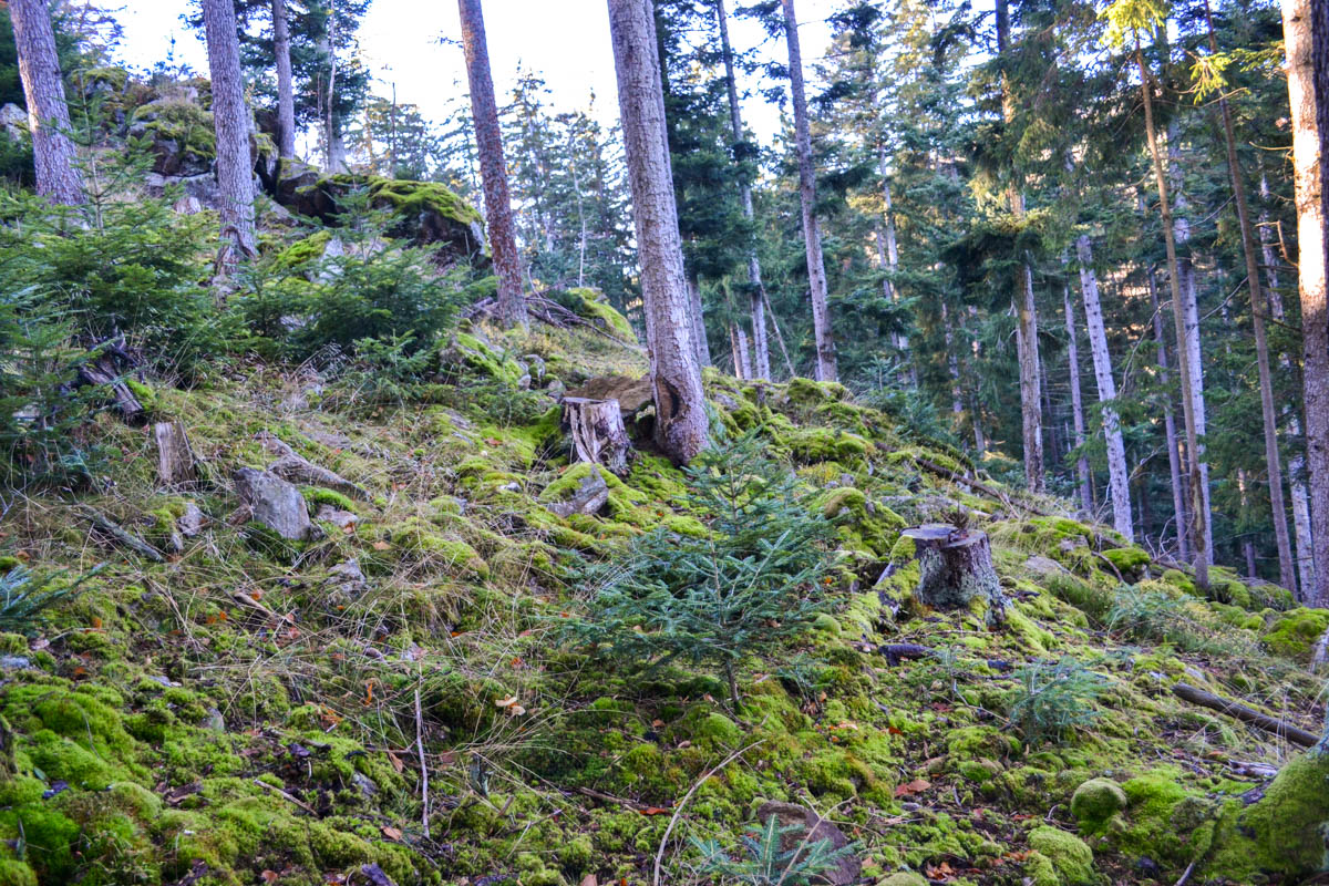 Jedná se o staré smrkové a jedlové porosty se výrazným zmlazením jedle. Na ploše převládají exponovaná stanoviště – skalní výchozy a prudké svahy, které jsou ukončeny úžlabím Boubínského potoka.