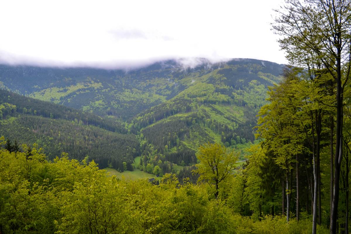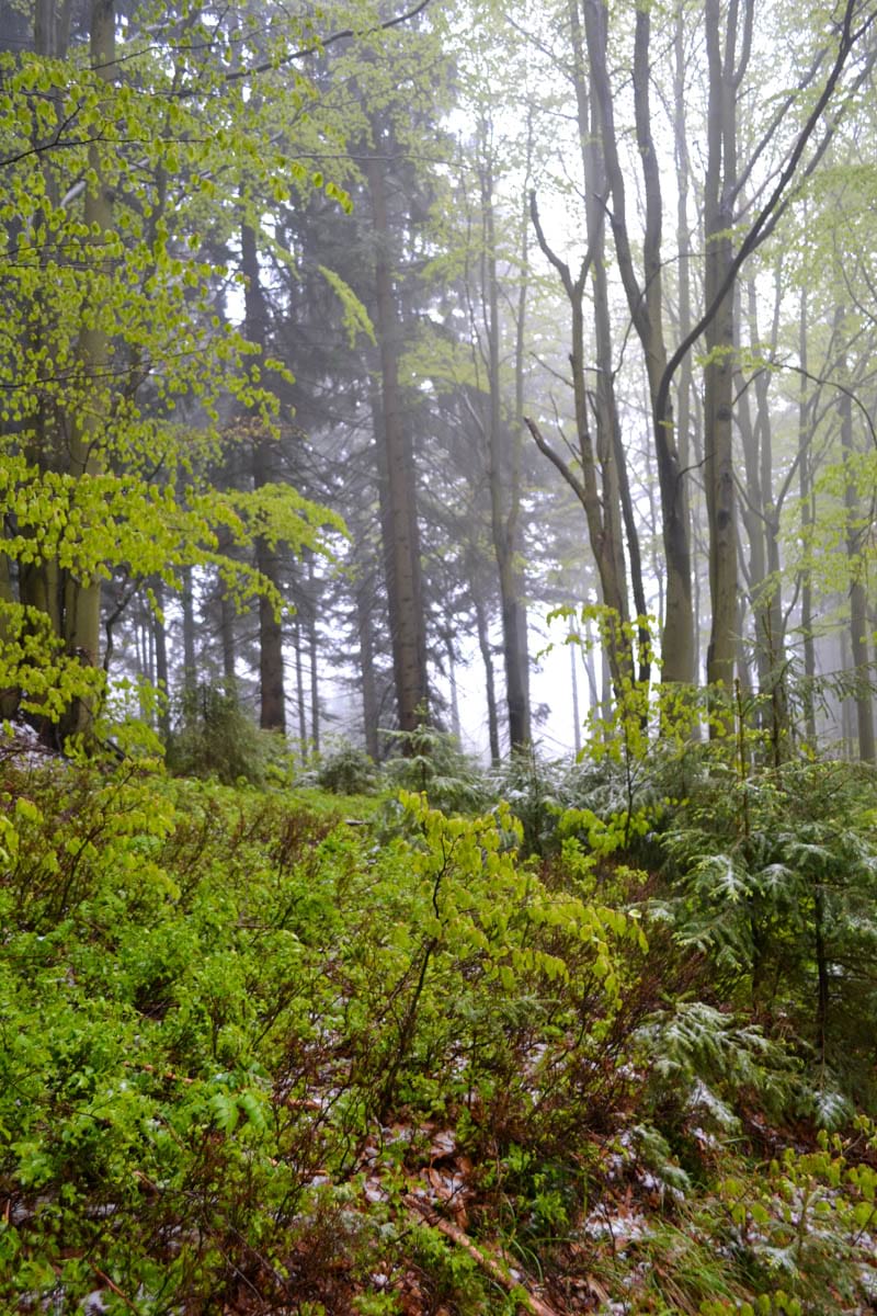 smíšené lesy, které jsou přirozeným biotopem tetřeva hlušce a jeřábka lesního