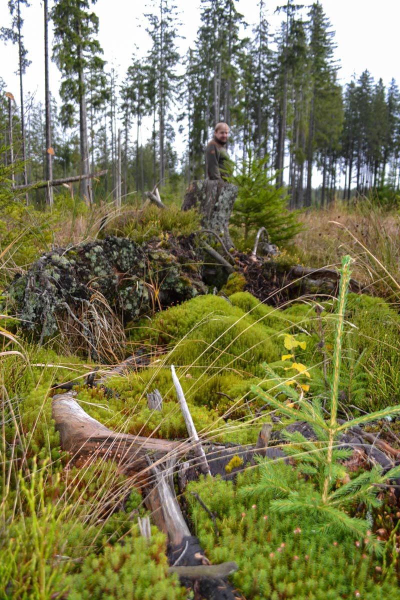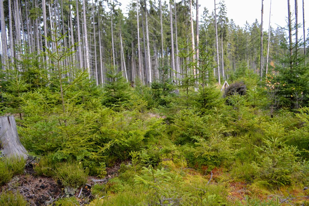Důležitý je zde individuální přístup ke stromům, žádné plošné zásahy. V jádrových porostech nebudeme provádět mýtní úmyslné těžby a veškerá odumírající i odumřelá dřevní hmota, včetně sterilních souší, bude ponechávána k zetlení v porostu. Nahodilé těžby budou realizovány pouze v případě ohrožení osob nebo majetku, případně při nutnosti zabránit vývinu a šíření podkorního hmyzu na smrku ztepilém, přičemž asanovaná dřevní hmota bude ponechána na místě.