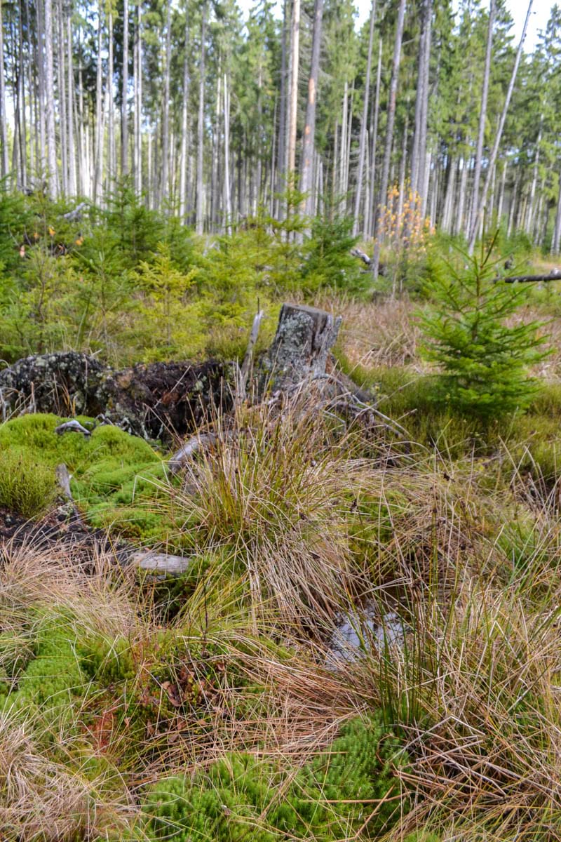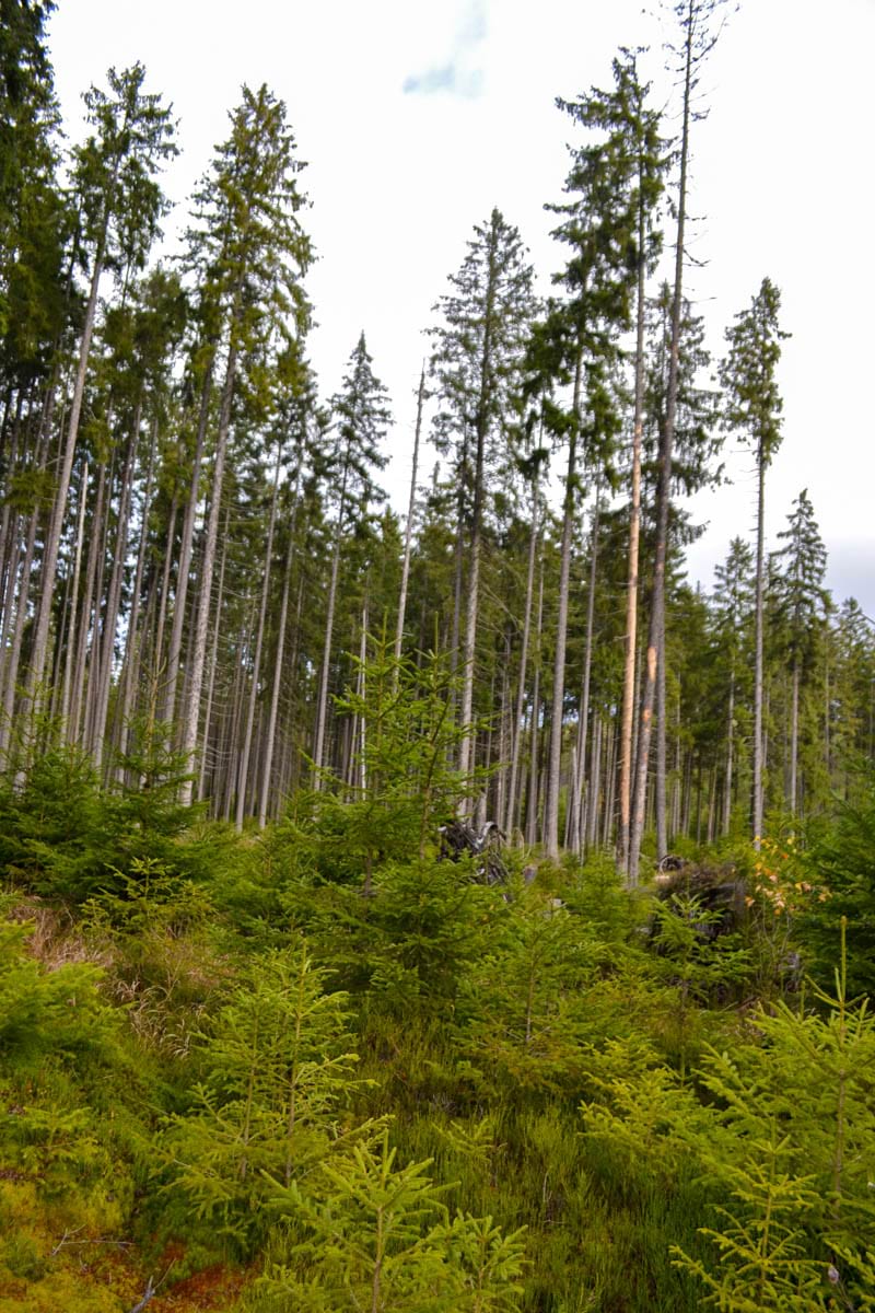 Dřevinná skladba : v hlavní úrovni smrk (98 %), buk (2 %). V mladých porostech je smrk s příměsí borovice, jeřábu a břízy.