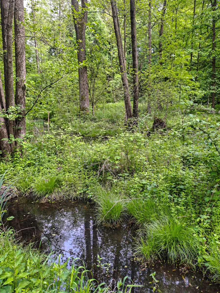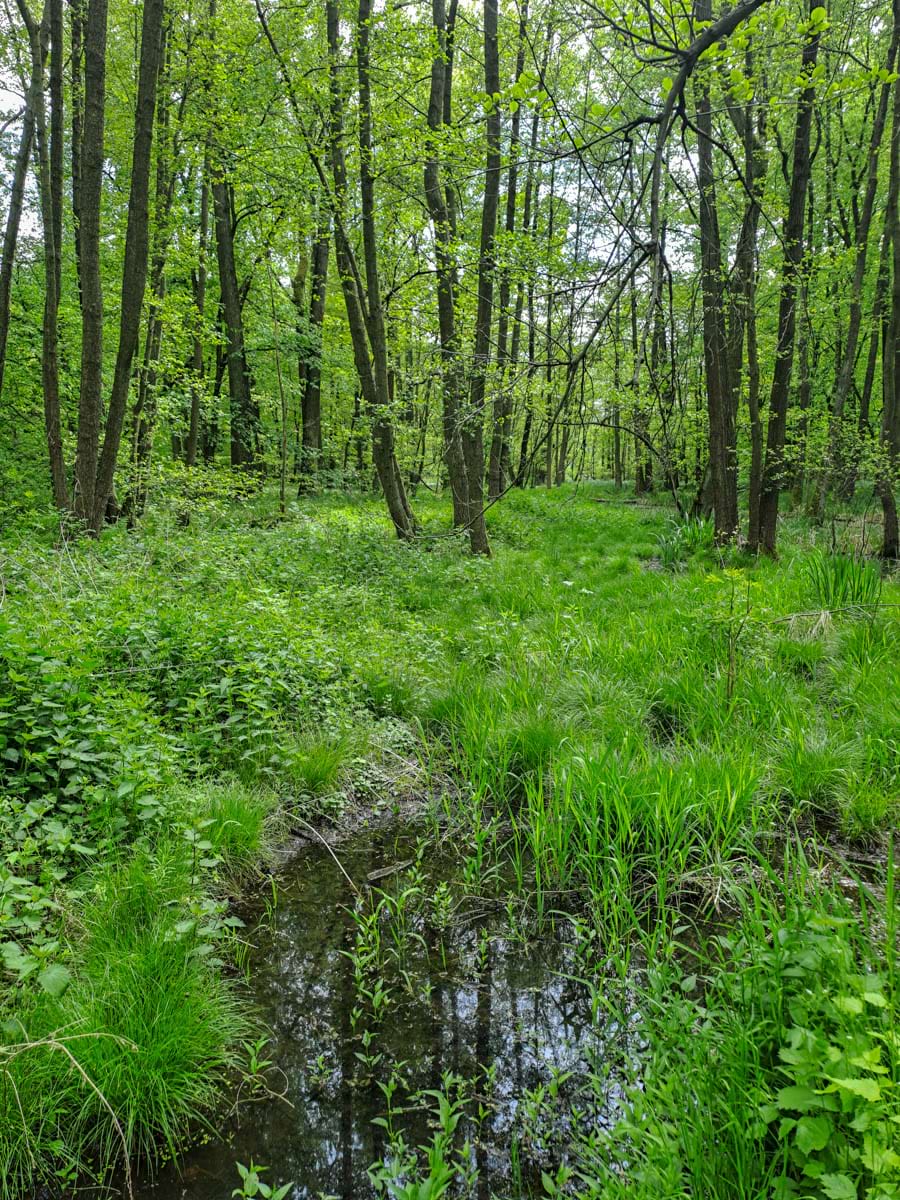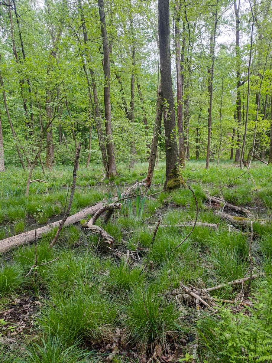 biotop smíšených lesů, na podmáčených stanovištích s mokřadní květenou a živočichy na něm se vyskytujícími, vzniklý v místě bývalých obhospodařovaných luk
