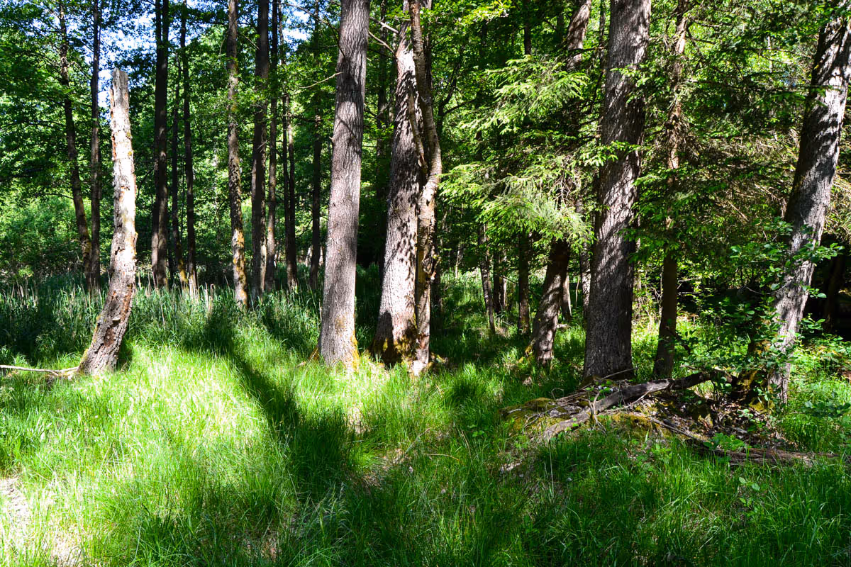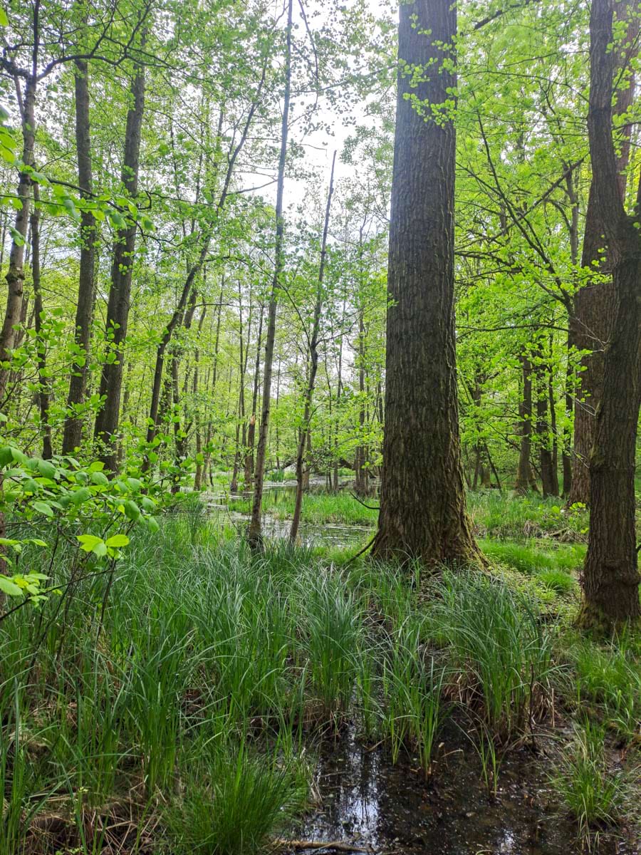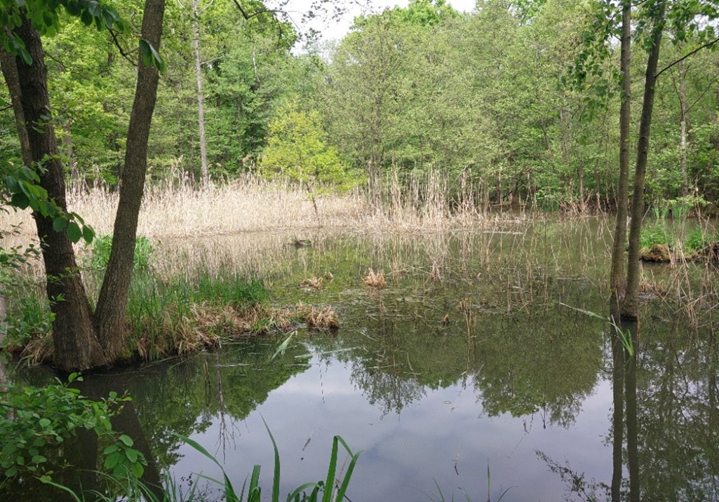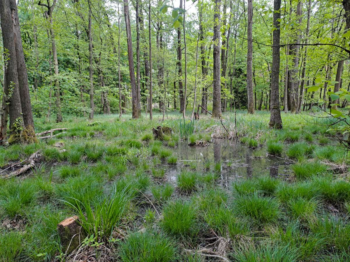 biotop smíšených lesů, na podmáčených stanovištích s mokřadní květenou a živočichy na něm se vyskytujícími, vzniklý v místě bývalých obhospodařovaných luk