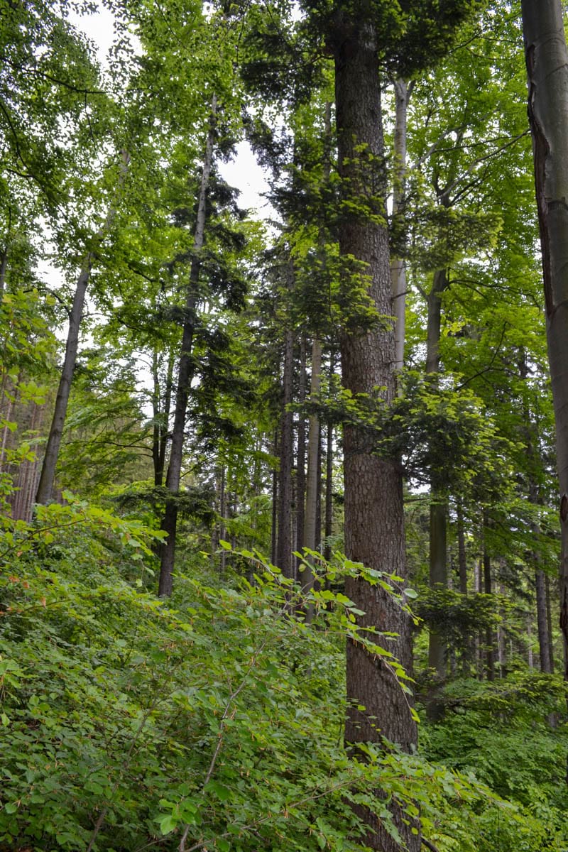 starší porosty tzv. hercynské směsi (smrk, buk, jedle) s příměsí dalších jehličnanů a listnáčů (modřín, borovice, javor klen), nacházející se v Moravskoslezských Beskydech